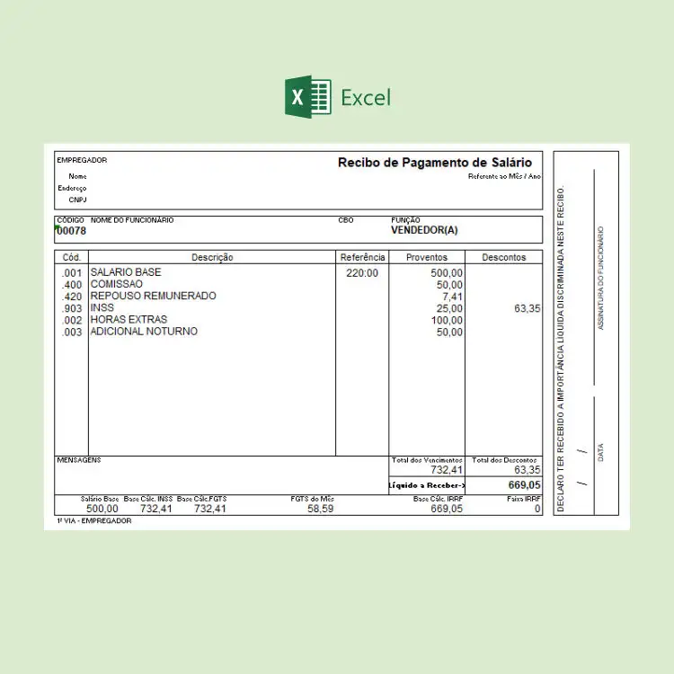 Folha de Salário Holerite de pagamentos e contracheque é um recibo Salarial. Versão para computador modelo 100% editável no Excel com resultado automatizados.